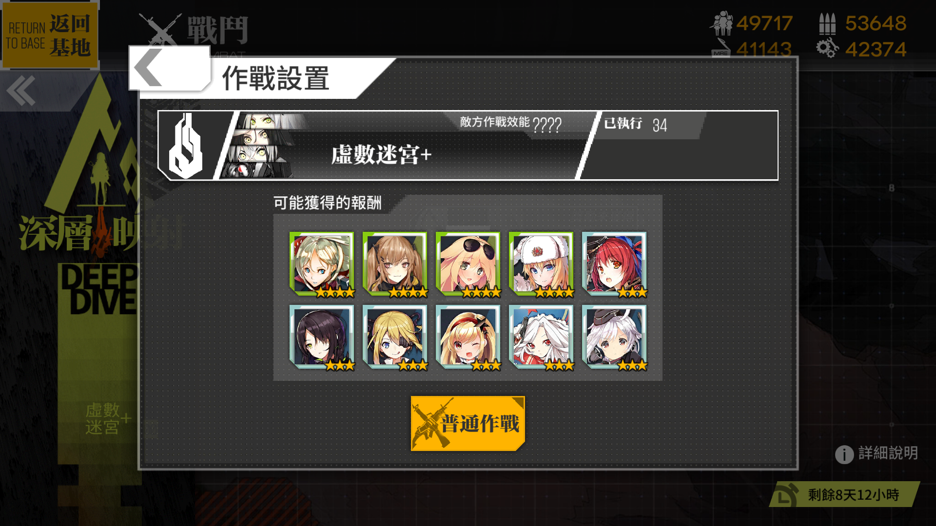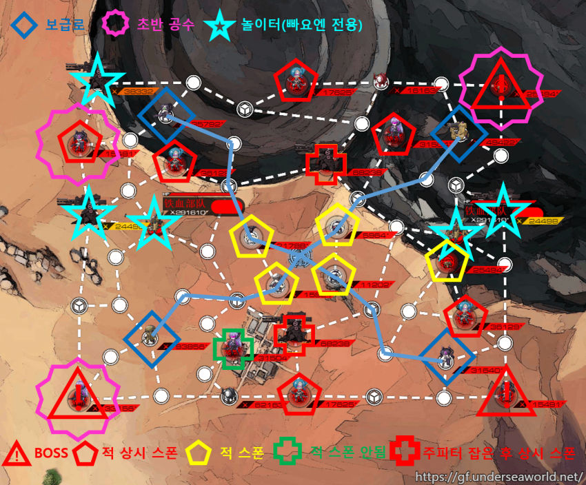 絶望的戦力の雑魚部隊、編成は装甲兵20体+マンティコア9体。、上述したRF隊や極限まで装甲を強化したSGMG隊以外で倒すのは不可能に近い。が、貰えるポイントも大きいので確実に倒せるなら一戦ごとに修復をしてもお釣りが出る。
