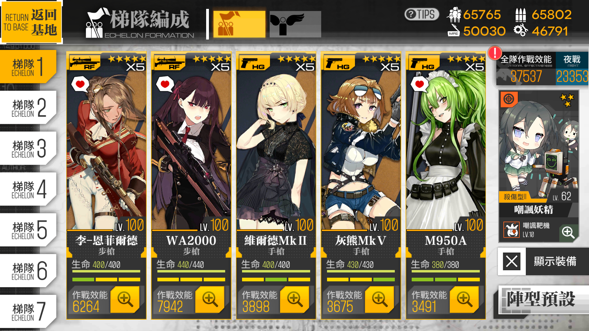 RF・MG・高性能HGで固めた部隊を4つほど組めれば終盤でも余裕を持って戦えるでしょう。AR・SMGはボスや通常敵用に2~3部隊ほどあれば十分です。
