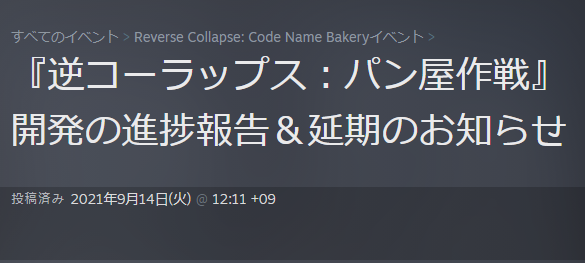 本日パン屋作戦公式より、「逆コーラップス:パン屋作戦」発売が延期になったと発表がありました。