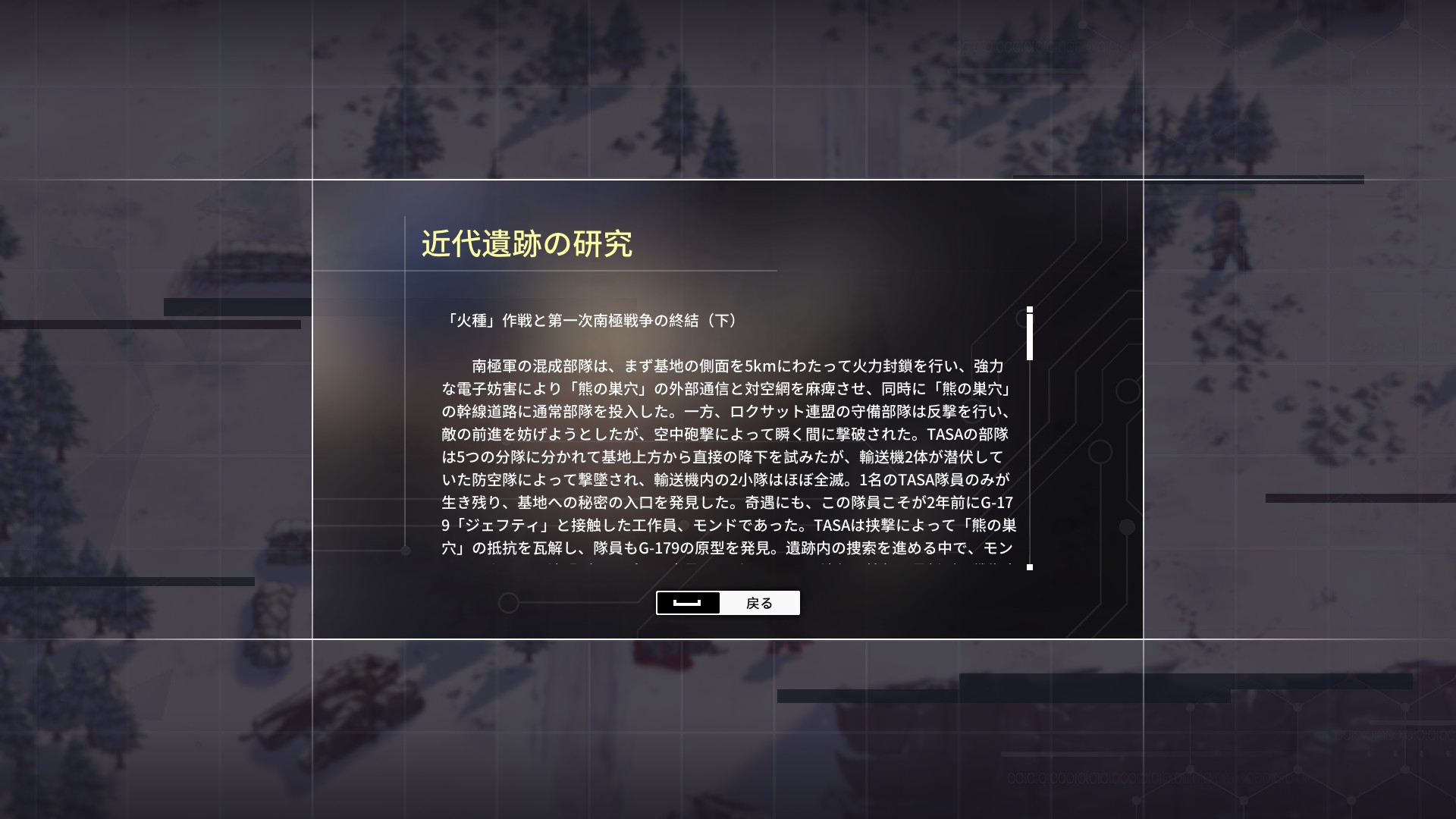 一方ロ連側は遺跡研究拠点と「鍵」であるジェフティを失ったことで、遺跡技術を獲得することに失敗。短期的に南極との技術ギャップを埋めることが出来なくなった。